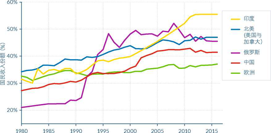 資料來源:時間財富與收入不平等數(shù)據(jù)庫(WID world)。世界不平均報告201WIR2018.wid.world
