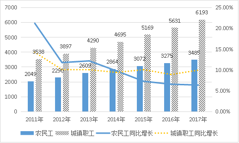 圖10:農(nóng)民工月平均收入對比(2017