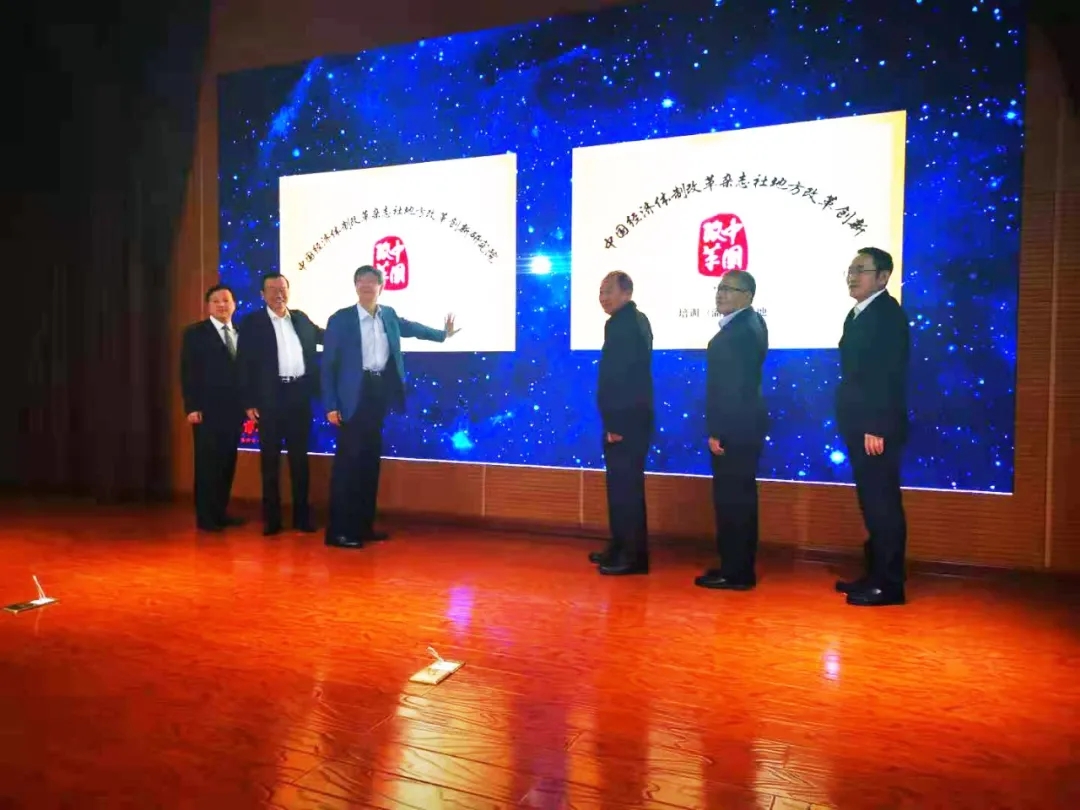 開(kāi)班儀式上,與會(huì)領(lǐng)導(dǎo)專家共同為中國(guó)經(jīng)濟(jì)體制改革雜志社地方改革創(chuàng)新研究院淄博分院、地方改革創(chuàng)新培訓(xùn)(淄博)基地揭牌。