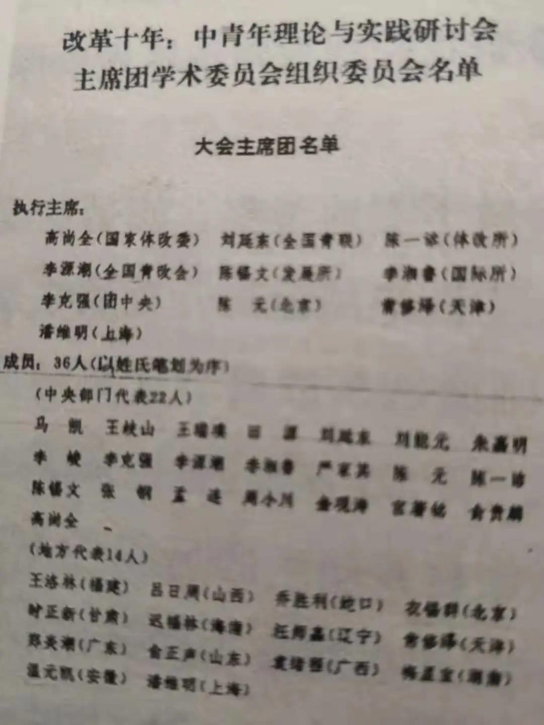 更使我難以忘懷的是,1989年春天的 “改革十年”大會(全稱為“改革十年:中青年理論與實踐研論會”),在北京京豐賓館舉行。近日,微信群流傳當(dāng)年大會主席團名單,您位列十名執(zhí)行主席之首(我作為天津代表忝列其中)。在這個有全國400多位代表參加的大會上,各種思潮涌現(xiàn):穩(wěn)健改革、偏于保守和偏于激進三種意見激烈爭辯。我參加了幾次執(zhí)行主席會議。在您和李克強、李源潮、劉延?xùn)|等執(zhí)行主席的共同主持下,會議順利進行并圓滿結(jié)束。閉幕前,受到中央政治局、國務(wù)院領(lǐng)導(dǎo)和中央顧問委員會老同志的接見。在改革十年這一關(guān)鍵節(jié)點上的會議,受到各方關(guān)注和重視,是很不容易的。對這樣一個重要會議且直接共事數(shù)日,我又怎么能忘記?