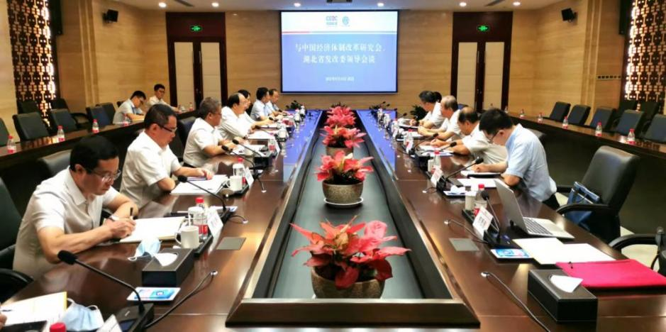 調(diào)研期間,彭森會(huì)長(zhǎng)一行在湖北省發(fā)改委組織召開專題座談會(huì)。省發(fā)改委、經(jīng)信廳、財(cái)政廳、生態(tài)環(huán)境廳、國(guó)資委、市場(chǎng)監(jiān)管局、武漢市發(fā)改委以及省文化旅游投資集團(tuán)有限公司,武漢商貿(mào)國(guó)有控股集團(tuán)有限公司等單位負(fù)責(zé)同志參加座談會(huì)并介紹相關(guān)情況。