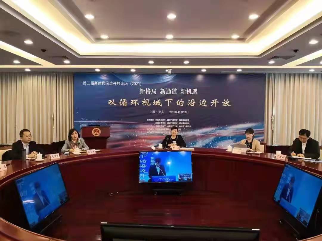 2021年12月25日,我會(huì)常務(wù)副會(huì)長(zhǎng)兼秘書長(zhǎng)趙艾應(yīng)邀出席新時(shí)代沿邊開(kāi)放論壇,并以線上視頻連線的方式作題為“沿邊開(kāi)放新時(shí)代新任務(wù)新要求”主旨演講。中共中央黨校(國(guó)家行政學(xué)院)經(jīng)濟(jì)學(xué)教研部主任、教授、博士生導(dǎo)師韓保江,云南省商務(wù)廳黨組書記、廳長(zhǎng)李晨陽(yáng),中共臨滄市委副書記、臨滄市人民政府代理市長(zhǎng)杜建輝作論壇開(kāi)幕式致辭。中共中央黨校(國(guó)家行政學(xué)院)經(jīng)濟(jì)學(xué)教研部副主任、教授、博士生導(dǎo)師曹立作閉幕總結(jié)。