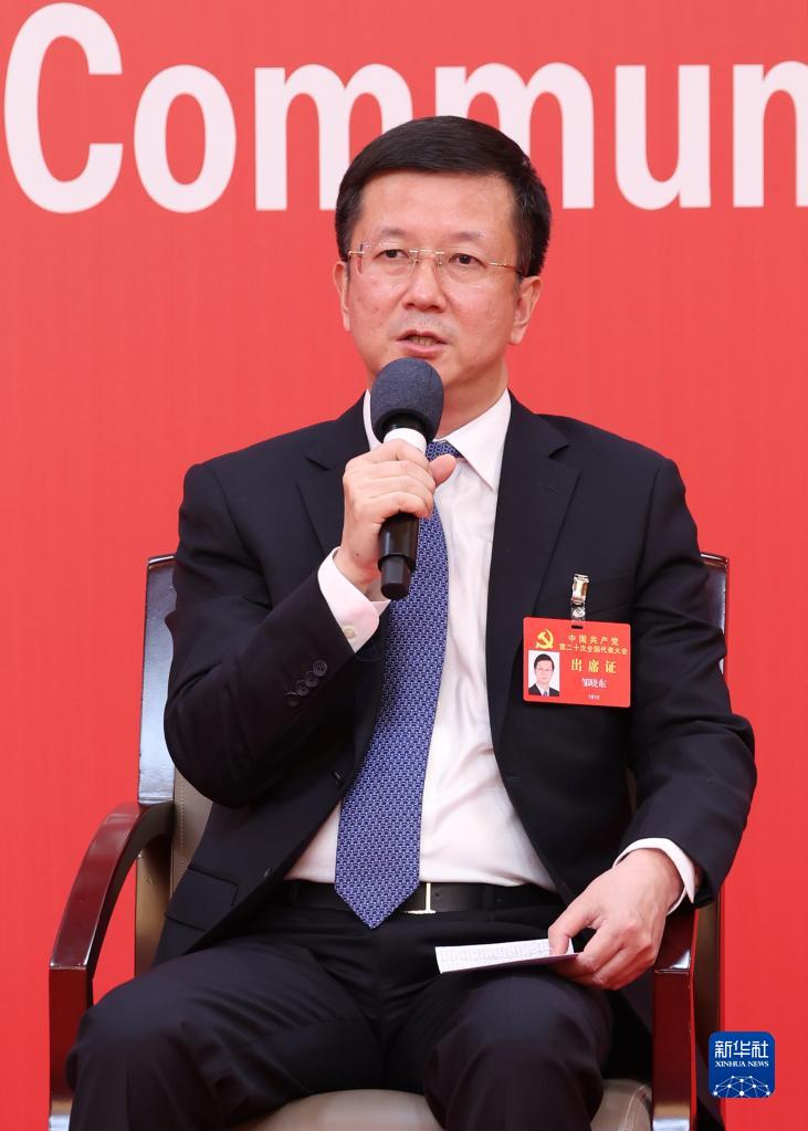 10月20日,中國共產(chǎn)黨第二十次全國代表大會新聞中心舉行集體采訪。青海、寧夏、新疆、中央和國家機關(guān)、中央金融系統(tǒng)、中央企業(yè)系統(tǒng)(在京)代表團新聞發(fā)言人出席,介紹代表團學習討論二十大報告情況,并回答記者提問。新華社記者 張玉薇 攝