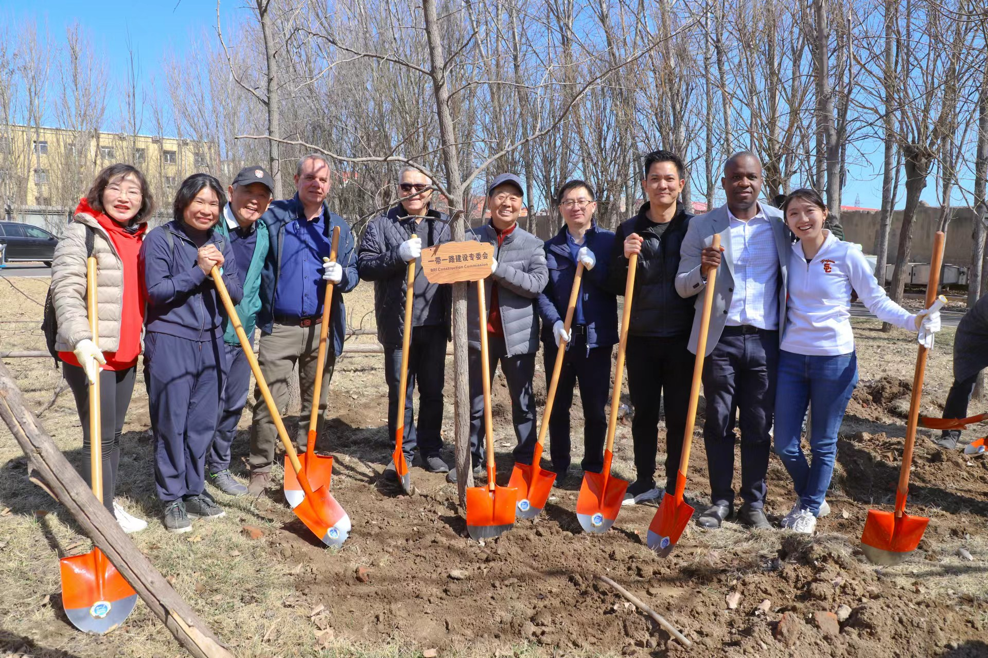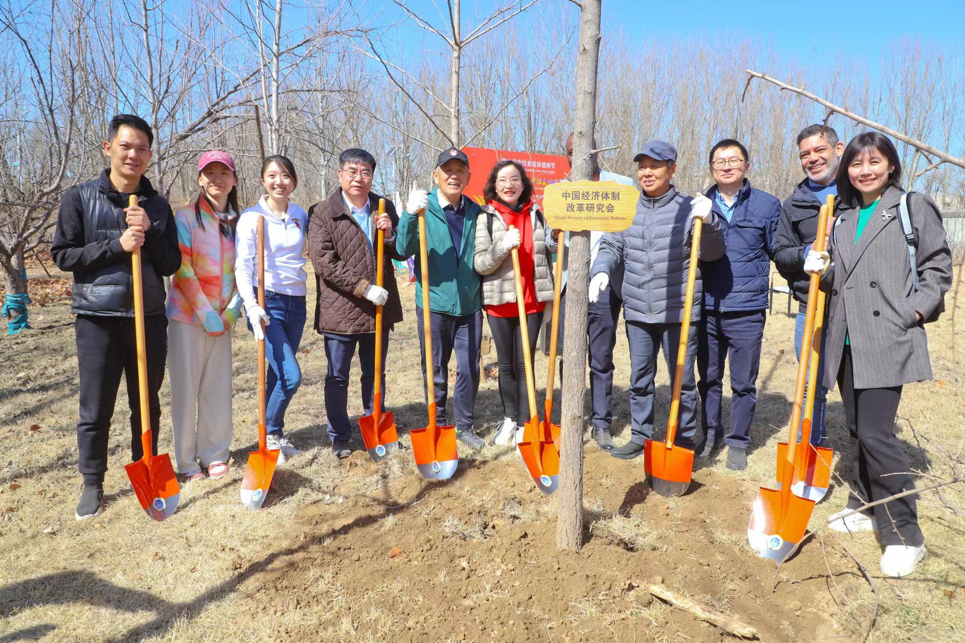 來自烏拉圭、阿根延、秘魯、古巴、多米尼加、厄瓜多爾、哥斯達黎加、委內(nèi)瑞拉、蘇里南、薩爾瓦多、巴哈馬、安巴、海地等14個拉美國家的駐華使節(jié)和貿(mào)易代表,和中國經(jīng)濟體制改革研究會、絲綢之路城市聯(lián)盟、央視網(wǎng)、CGTN、綠色中國、北京中創(chuàng)碳投、北京絲促會、3060俱樂部等機構(gòu)的代表們,一起揮鍬鏟土、提水澆灌,種下銀杏、紅楓、玉蘭、海棠等多種樹苗,為小樹苗掛牌,一起合影留念。