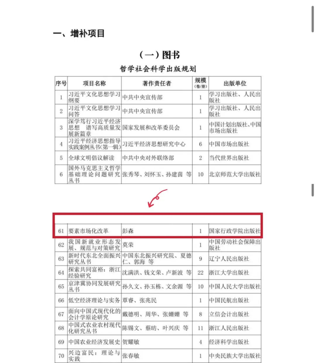 2024年8月29日,國(guó)家新聞出版署公布《“十四五”國(guó)家重點(diǎn)出版物出版規(guī)劃調(diào)整情況》,確定“十四五”國(guó)家重點(diǎn)出版物出版規(guī)劃增補(bǔ)項(xiàng)目590個(gè),其中圖書出版項(xiàng)目524個(gè)、音像電子出版項(xiàng)目59個(gè)、數(shù)字出版項(xiàng)目7個(gè)。我會(huì)彭森會(huì)長(zhǎng)主編的《要素市場(chǎng)化改革》入選“哲學(xué)社會(huì)科學(xué)出版規(guī)劃”項(xiàng)目。