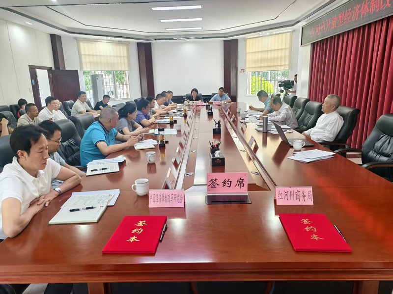 在紅河州調(diào)研期間,趙艾以“擴大沿邊開放是推進中國式現(xiàn)代化的重要任務(wù)”為題,為州委書記趙瑞君主持的州委中心組集中學(xué)習(xí)做專題報告。州委副書記、州長羅萍等州委理論學(xué)習(xí)中心組成員出席,州委、州政府有關(guān)領(lǐng)導(dǎo)、相關(guān)部門負責(zé)同志列席,全州13縣(市)主要負責(zé)同志以視頻形式聽講。副州長許高紅主持召開“紅河州開放型經(jīng)濟體制改革專項小組”專題會,州委政研室、州商務(wù)局、開放辦、交通運輸局、農(nóng)業(yè)農(nóng)村局、外辦、蒙自海關(guān)、稅務(wù)局、金融監(jiān)管局、人民銀行紅河支行等單位負責(zé)同志參加并發(fā)言,向調(diào)研組介紹了有關(guān)情況。紅河州商務(wù)局出面與我會“一帶一路”建設(shè)專委會簽訂了合作框架協(xié)議。調(diào)研組還到云南錫業(yè)化工材料有限公司、云南美科新能源發(fā)展有限公司、蒙自經(jīng)開區(qū)管委會、元陽縣鄉(xiāng)村振興產(chǎn)業(yè)園、云南自貿(mào)試驗區(qū)紅河片區(qū)(河口邊合區(qū))、河口口岸等實地調(diào)研。