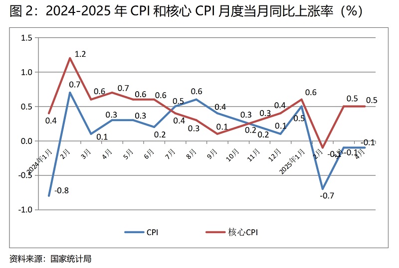 (二) CPI降幅與上月持平。4月份,CPI同比下降0.1%,與3月份下降0.1%持平, CPI已連續(xù)3個月下降,也是自上年2月份以來再次出現(xiàn)的下降;4月份,核心CPI同比上漲0.5%,與3月份上漲0.5%持平。CPI保持下降的趨勢,雖然有國際石油價格下降因素的影響,但核心CPI仍保持在低位運行,說明需求特別是消費需求仍還較為偏弱,擴(kuò)大需求特別是消費需求還需要進(jìn)一步加大力度。