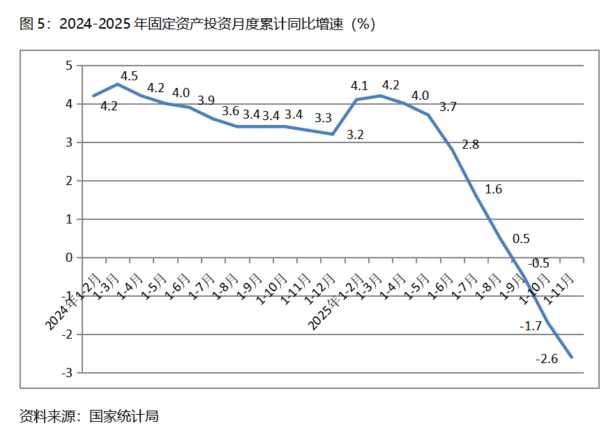 1-11月份,固定資產(chǎn)投資累計增速快于或持平固定資產(chǎn)投資總額下降2.6%的行業(yè)共6個,即電力、熱力、燃氣及水的生產(chǎn)和供應(yīng)業(yè)增長10.7%,采礦業(yè)增長4.0%,制造業(yè)增長1.9%。農(nóng)林牧漁業(yè)增長0.3%,交通運輸、倉儲和郵政業(yè)下降0.1%,文化、體育和娛樂業(yè)下降2.6%。